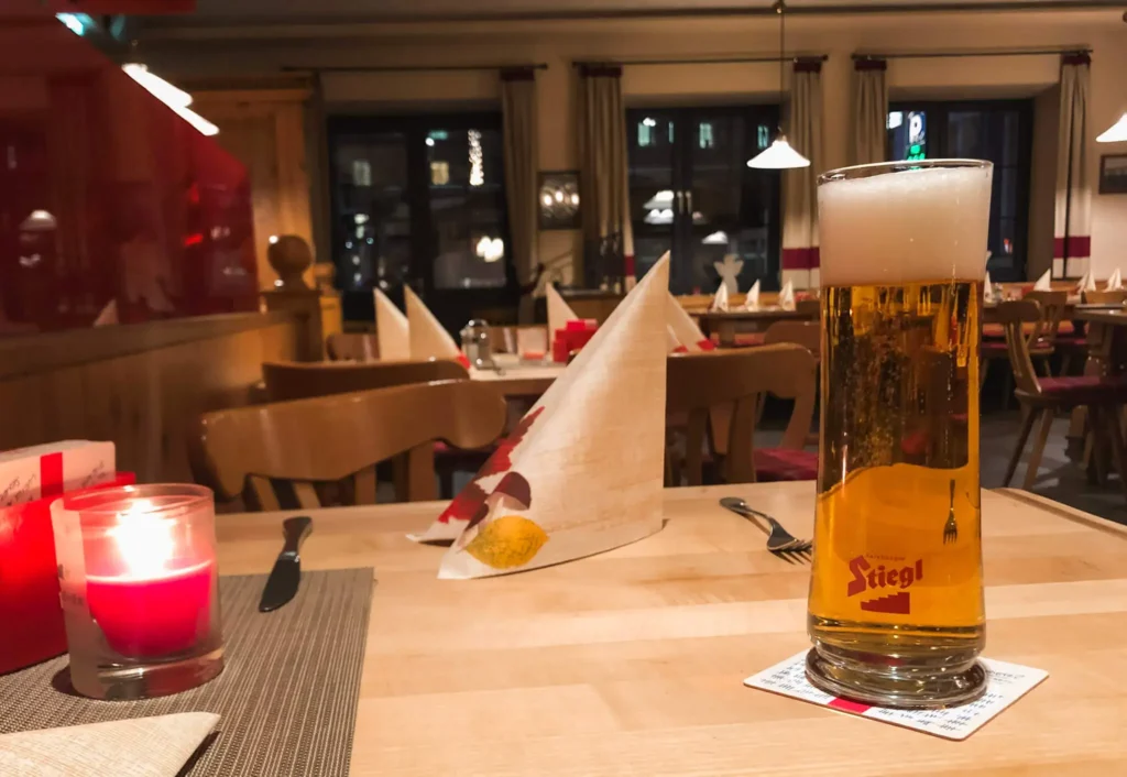 Arriba, el mirador Hafelekar ofrece una panorámica brutal: la ciudad a un lado, kilómetros de cumbres al otro. El aire es tan frío y limpio que parece que te despeja la cabeza de golpe. Justo allí hay un restaurante con una terraza cuyas vistas son aún mejores, y no pude resistirme a tomar una cerveza al sol, al borde de la montaña, admirando el valle por completo. Y, aunque las pistas están allí mismo para quienes quieran esquiar, opté por bajar caminando, ya que en la zona los senderos están muy bien señalizados. De esta forma, pude ir viendo cómo el paisaje iba cambiando poco a poco hasta volver a pisar las calles adoquinadas de Innsbruck.